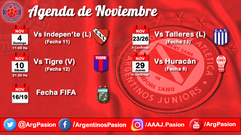 Un nuevo mes llegó. Noviembre ya empezó a correr en el calendario, en lo que puede ser un mes clave para la gente de Argentinos Juniors.