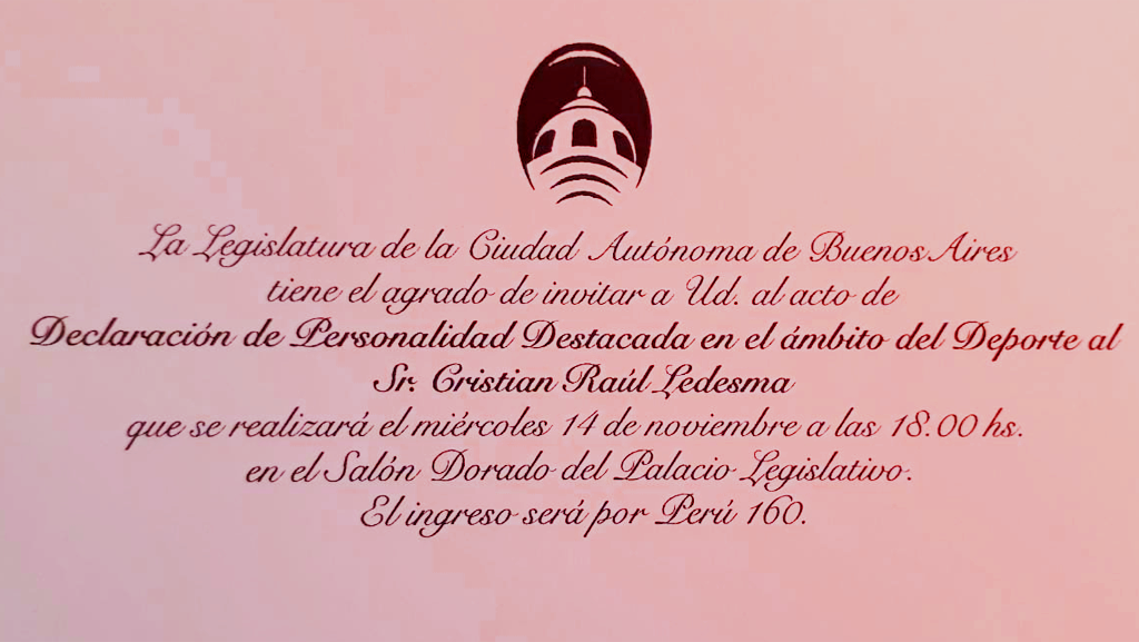 Hoy a las 18 hs la Legislatura Porteña declarará Personalidad Destacada en el Ámbito del Deporte a uno de los exponentes del Semillero del Mundo, muy querido por los hinchas de Argentinos Juniors: Cristian “El Lobo” Ledesma; el acto se realizará en el Salón Dorado del Palacio Legislativo.