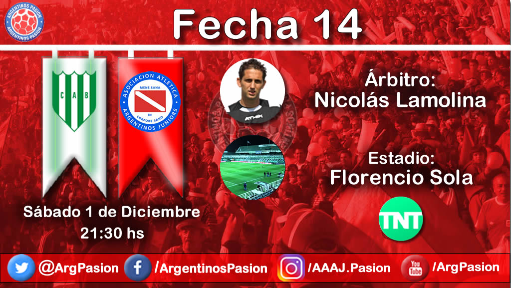 Argentinos Juniors visitará este sábado al Club Atlético Banfield, desde las 21.30 hs, por la jornada número catorce de la Superliga. El árbitro del encuentro será Nicolás Lamolina.