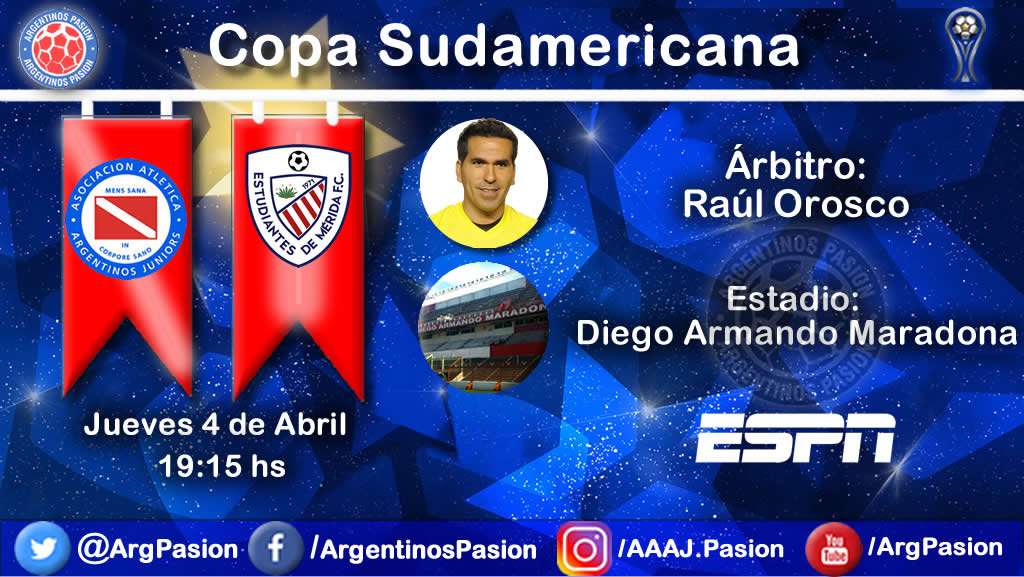 Argentinos se enfrentara mañana a Estudiantes de Mérida, a las 19.15 hs, por la primera ronda de la Copa Sudamericana. El encargado de impartir justicia será el árbitro boliviano Raúl Orosco.
