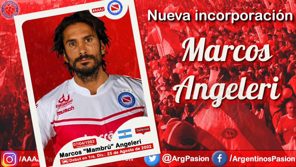 Marcos Alberto Angeleri llega a Argentinos Juniors con el pase en su poder. El defensor, de 1,83 mts., firmó contrato hasta el 30 de junio de 2020. Surgido de las Inferiores de Estudiantes de La Plata, debutó en Primera División el 25 de agosto de 2002, cuando el Pincha enfrentó a River Plate.
