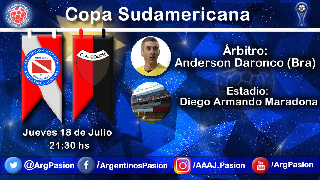 Argentinos Juniors recibe como local a Colón de Santa Fe, a las 21.30 hs, por la vuelta de los octavos de final de la Copa Sudamericana. El árbitro será el brasileño Anderson Daronco.