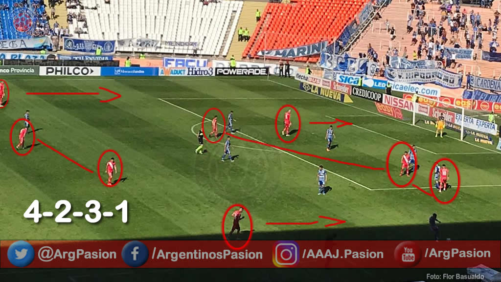 Para empezar, planteó uno de sus esquemas favoritos. Ese 4-2-3-1 que adoptó prácticamente desde sus comienzos en el conjunto mendocino. Pero la clave estuvo en los nombres. El orden llegó porque cada uno jugó en su posición. Esta vez tuvo la suerte de poder contar, casi por primera vez, con los intérpretes en su función ideal de mitad de cancha para adelante, algo que las lesiones no le habían permitido.