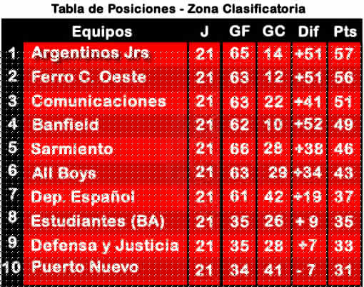 Finalmente, les dejamos la tabla de la fase clasificatoria, con los 10 equipos que pelearán por el ascenso: