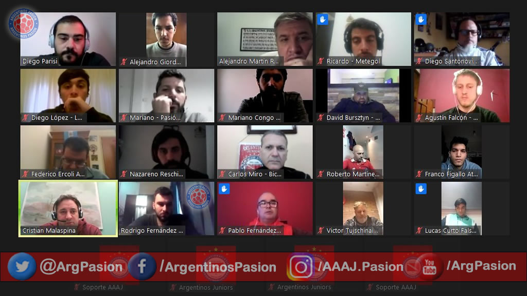 Con el fin de aclarar dudas e inquietudes sobre nuestro Argentinos Juniors y la pandemia, el sábado pasado Argentinos Pasión participó de la charla para medios partidarios y nacionales que realizó el club, y que fue la culminación de una serie de encuentros virtuales que la Comisión Directiva de la institución organizó con los socios. Las mismas fueron a través de la multipromocionada plataforma Zoom, medio de moda utilizado para reuniones virtuales en esta cuarentena que estamos pasando a causa del coronavirus Covid-19. A continuación, un pequeño resumen de lo más importante.
