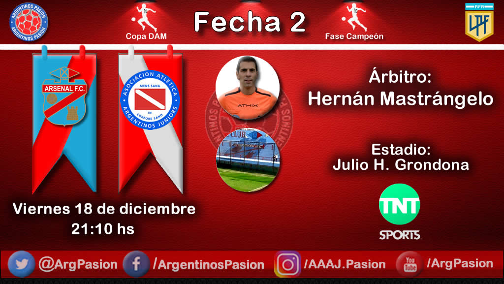 Por la 2da fecha de la fase Campeón en la Copa Diego Armando Maradona, Argentinos Juniors visita a Arsenal este viernes a las 21:10 hs en el Estadio Julio Humberto Grondona. Este encuentro será el que inicie la jornada de fútbol en este fin de semana y l partido se vive con mucha expectativa, ambos equipos obtuvieron empates positivos en el comienzo de la segunda fase del campeonato. El choque será arbitrado por Hernán Mastrangelo.