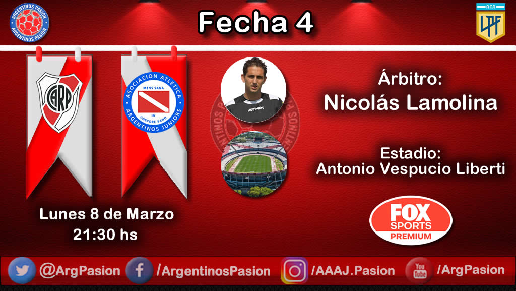 La terna arbitral en la noche del Monumental será comandada por Nicolás Lamolina. Junto a él estarán: Javier Uziga (A1), Diego Martin (A2) y Cristian Cernadas (4ºA).