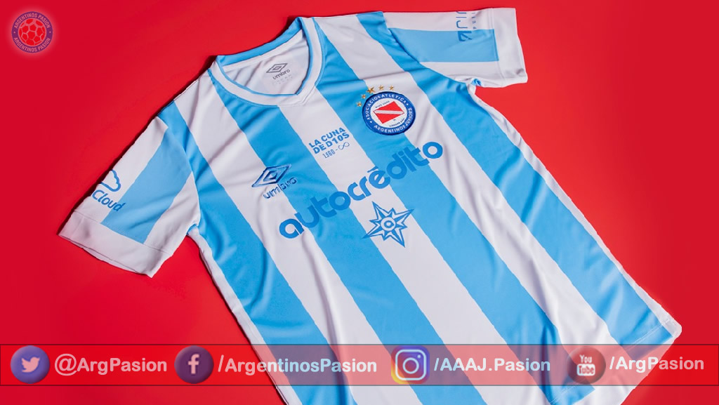 Esta es la nueva camiseta alternativa 3 de Argentinos Juniors. No es la primera vez que el Bicho utiliza indumentaria de este color, en el año 1960 se utilizó como segunda equipación y en el 2011, tercera equipación para la Copa Libertadores en ambas ocasiones eran celestes pero lisas, sin rayas.
