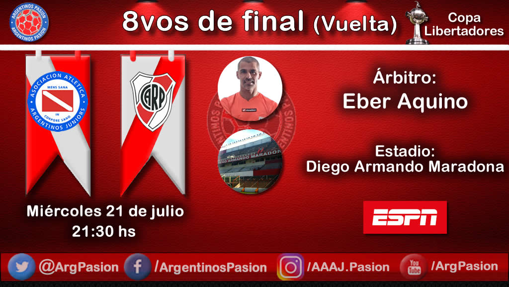 Después de un partido de ida muy reñido, donde el Bicho sacó un valioso empate 1 a 1, este miércoles a las 21:30 hs, en el Estadio Diego Armando Maradona, Argentinos Juniors y River Plate se disputarán el pase a los Cuartos de Final de la Copa Libertadores 2021, donde el ganador esperará a Atlético Minerio, quien dejó fuera de la competencia a Boca Juniors en un polémico encuentro. El partido será arbitrado por Eber Aquino y con mega transmisión de Argentinos Pasión.