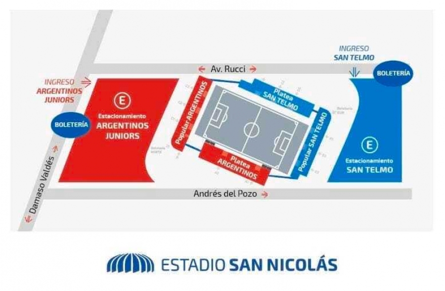ACCESOS AL ESTADIO ÚNICO DE SAN NICOLÁS PARA ARGENTINOS Y SAN TELMOEl estadio se encuentra mano derecha de la ruta 9, pasando la salida principal a la ciudad de San Nicolás. (Ver aquí)