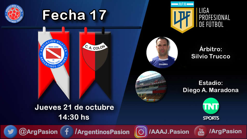 El partido, correspondiente a la jornada 17 del campeonato, contará con el arbitraje de Silvio Trucco y transmisión de Argentinos Pasión. El Bicho viene con altibajos, y tras perder un partido accesible en Tucumán. Mientras que Colón dio el batacazo y llega tras vencer en el ‘cementerio de los elefantes’ a Talleres de Córdoba, uno de los animadores del campeonato. Dos equipos de realidades diferentes se miden en La Paternal, el local tratando de levantar cabeza, el Sabalero queriendo treparse y acercarse a la cima.