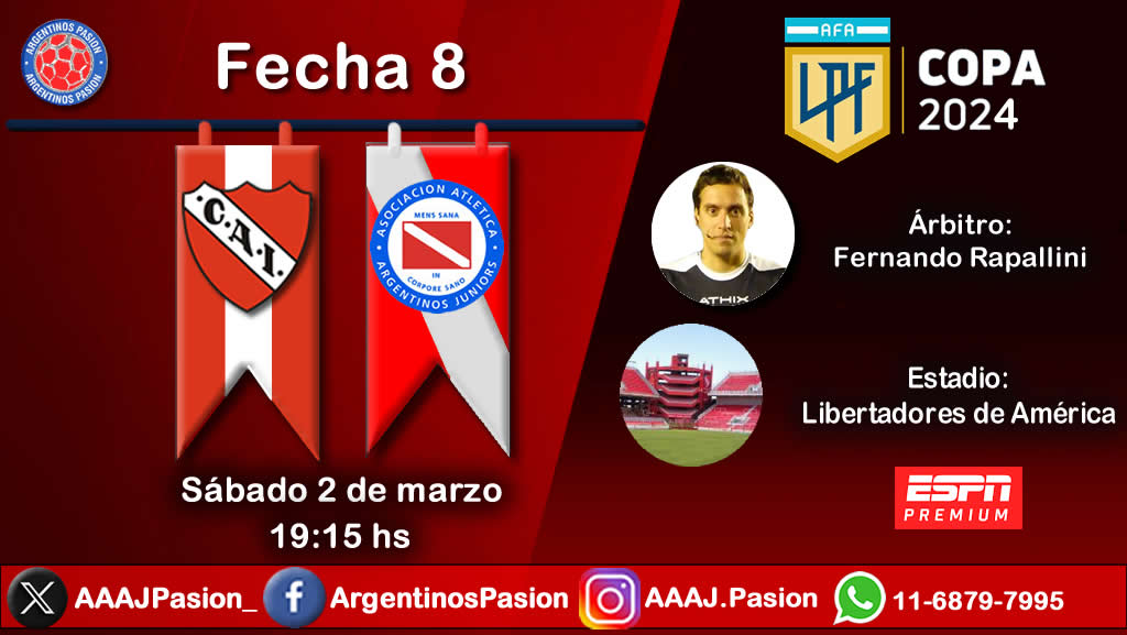 Argentinos Juniors, en su condición de único puntero de la Zona A, hasta el inicio de esta fecha, visitará al que era uno de sus escoltas, Independiente de Avellaneda en el Estadio Libertadores de América, este sábado desde las 19:15hs. en el marco de la Fecha Nº8 de la Copa de La Liga.