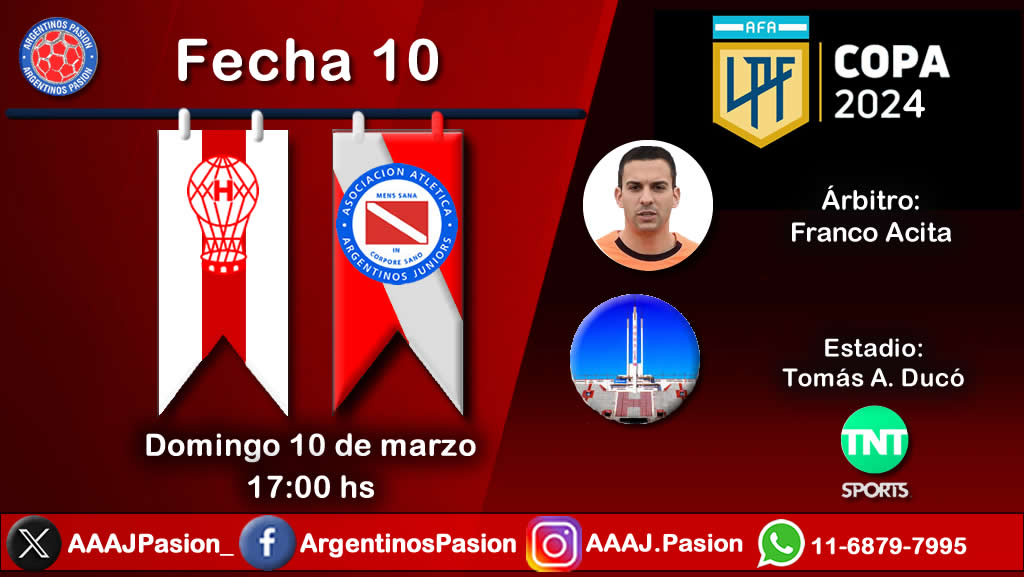 Argentinos Juniors visitará al Club Atlético Huracán en un partido correspondiente a la 10ma. fecha de la Zona A de la Copa de La Liga el domingo desde las17:00 hs. en un partido que será clave para las aspiraciones del Bicho Colorado de cara a la fase final de la Copa.