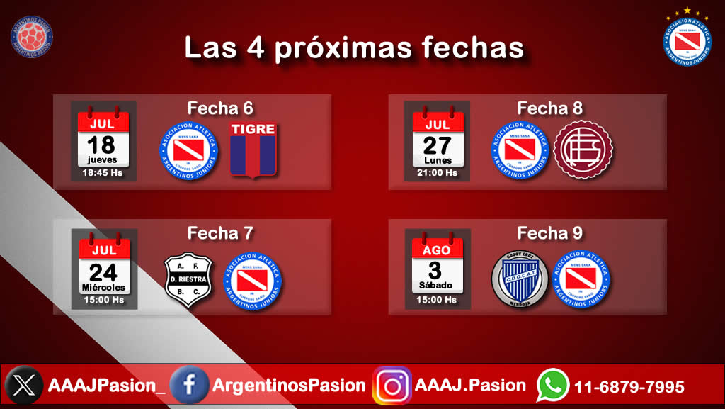 – Fecha Nº6: Argentinos Juniors vs. Tigre – Jueves 18/07 18:45hs. (L)
