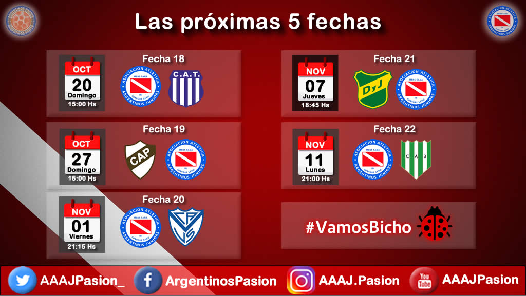 – Fecha Nº20: Argentinos Juniors vs. Vélez Sarsfield – Viernes 01/11 21:15hs. (L)