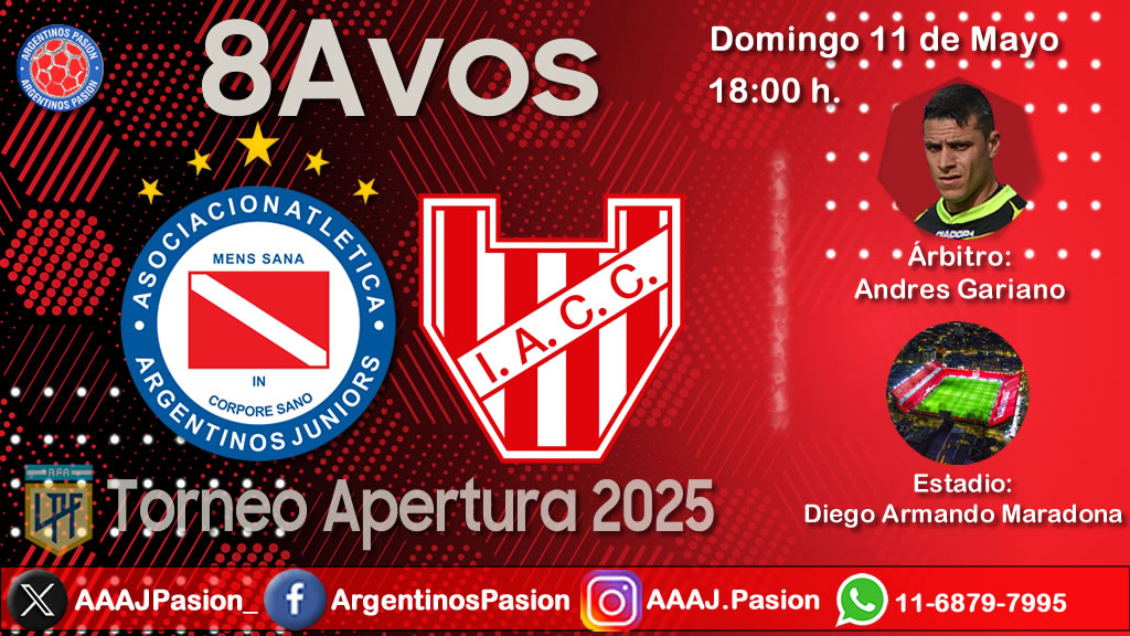 Tiempo de definiciones en el electrizante Torneo Apertura de la Liga Profesional de Fútbol que tiene a Argentinos Juniors como uno de los principales protagonistas. En el Estadio Diego Armando Maradona, por 8vos de final, el equipo dirigido técnicamente por Nicolás Diez recibe a Instituto Atlético Central Córdoba este domingo desde las 18:00 h. Quien se haga de la victoria en el tiempo reglamentario o en los disparos desde los doce pasos en caso de empate, deberá enfrentar a San Lorenzo de Almagro por 4tos. de final.