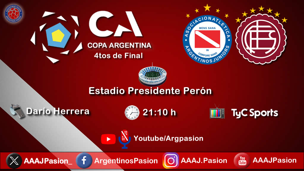 Argentinos Juniors se enfrentará al Club Atlético Lanús en un partido que, en lo que va de esta temporada, se presenta como el más importante de la misma. El encuentro correspondiente a 4tos de Final de Copa Argentina tendrá como escenario el Estadio Presidente Perón del Racing Club de Avellaneda y se disputará este lunes desde las 21:10 h. El equipo que resulte ganador deberá enfrentar en una de las semifinales al ganador del encuentro que deberán disputar los primeros equipos de Newell’s Old boys de Rosario y Belgrano de Córdoba