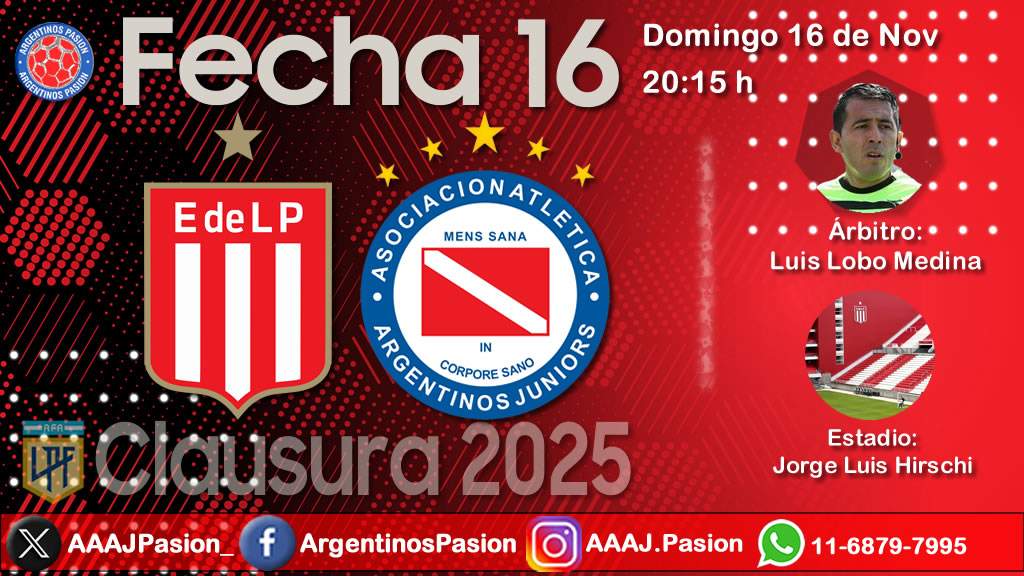 Argentinos Juniors tiene un compromiso trascendental este domingo desde las 20:15 h en un encuentro correspondiente a la fecha Nº16 del Torneo Clausura de la Liga Profesional de Fútbol. Deberá enfrentar a Estudiantes de La Plata en el Estadio UNO Jorge Luis Hirschi en un partido en donde se juega, por un lado la clasificación a los playoffs del presente torneo, y por otro el probable ingreso a zona de Copa Conmebol Libertadores 2026.